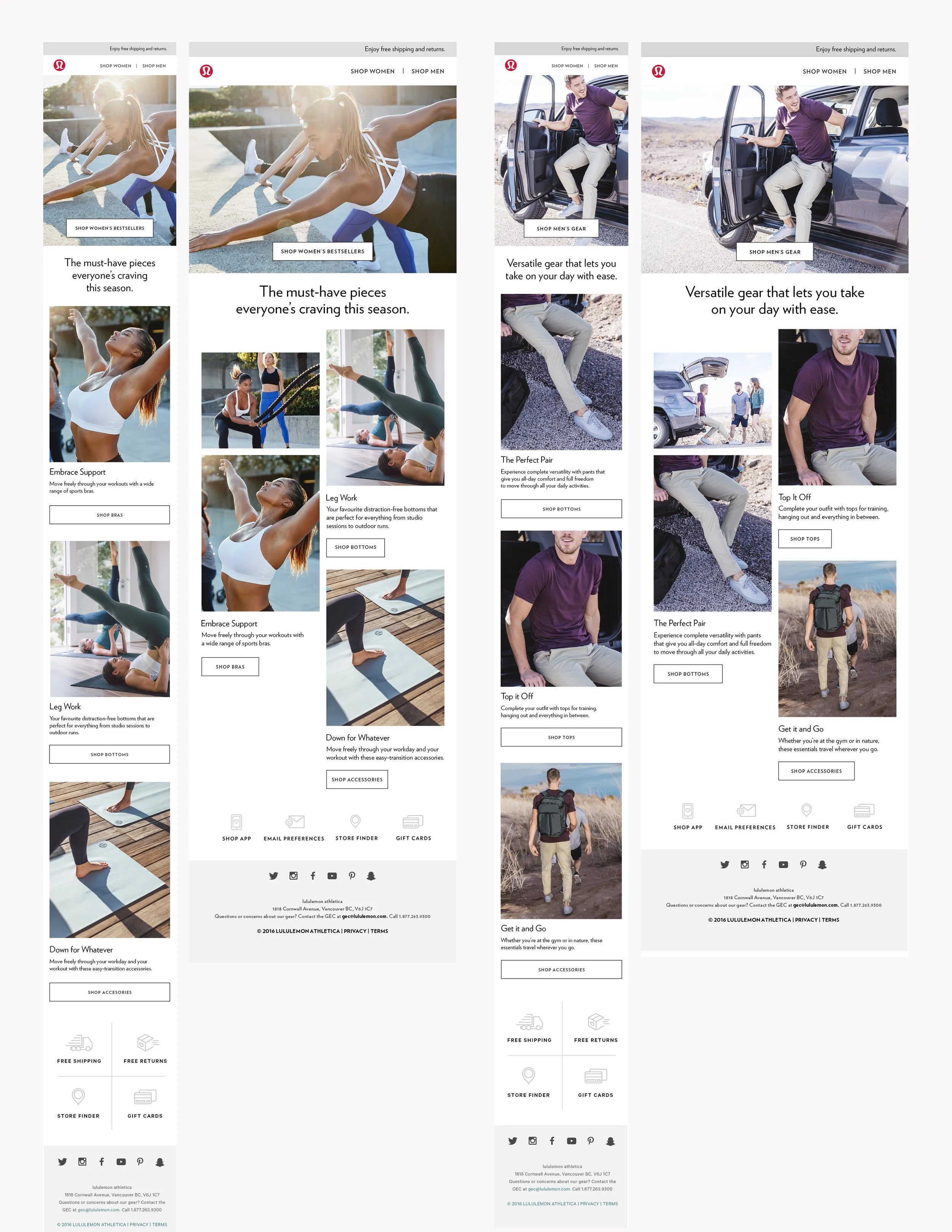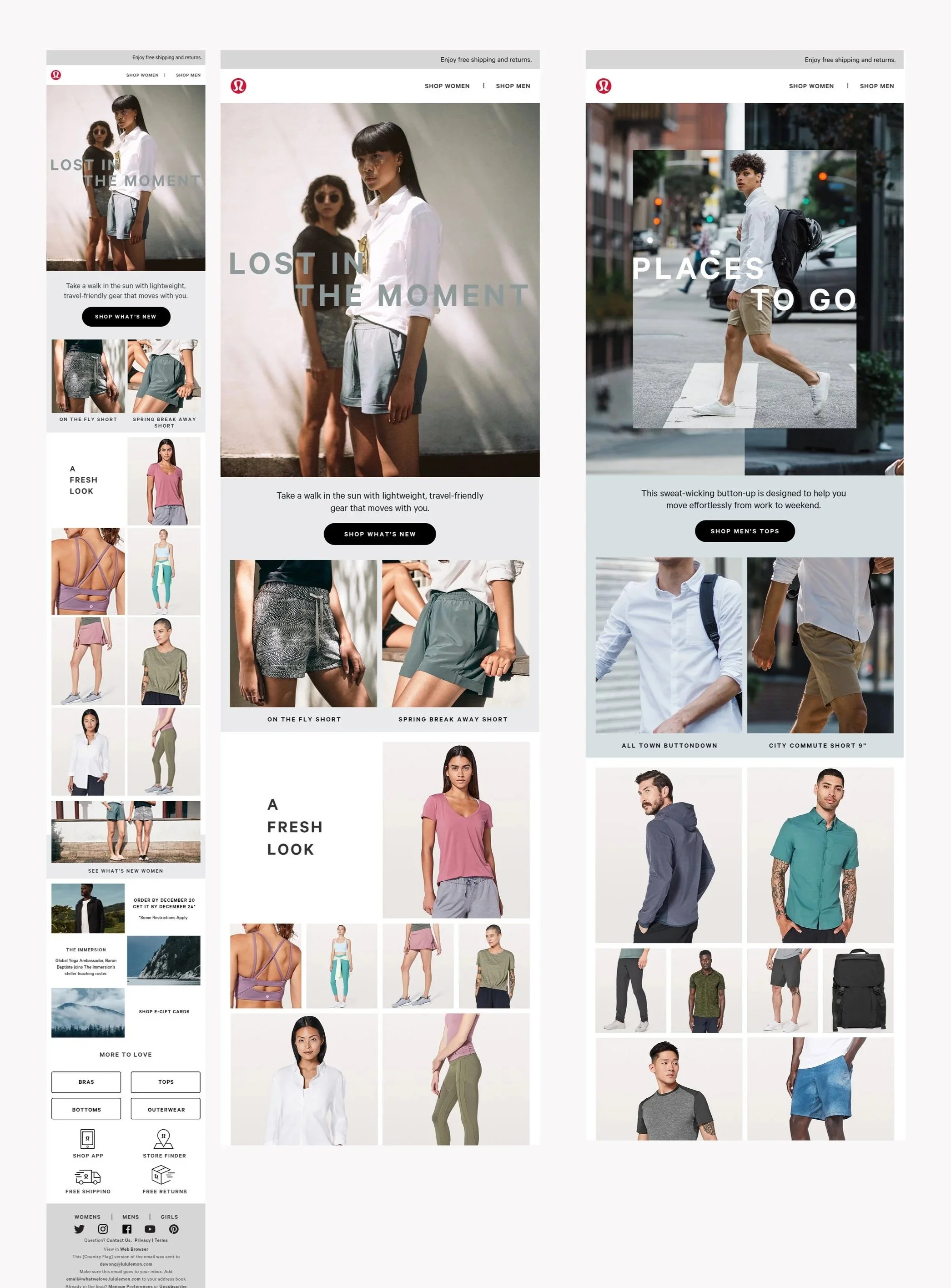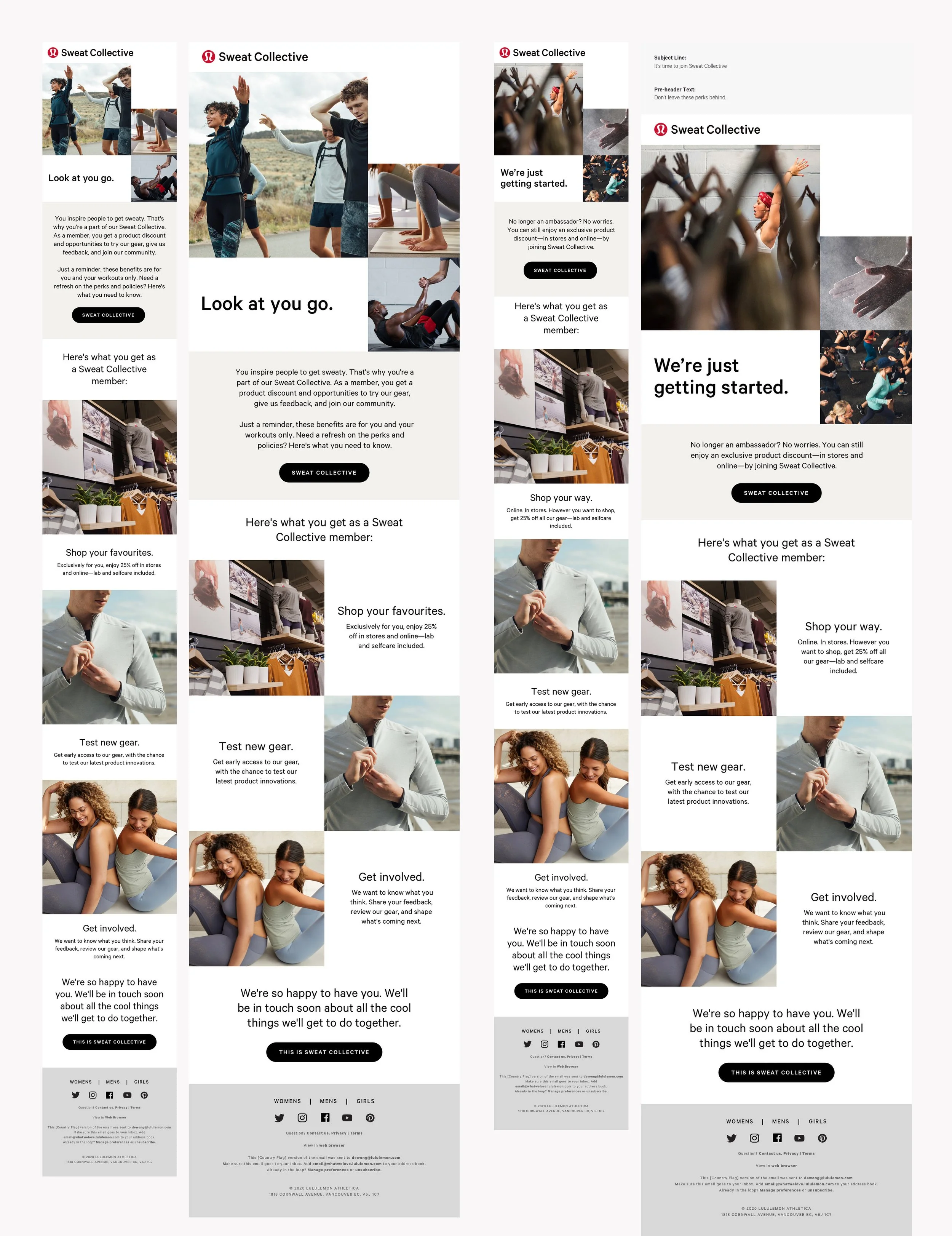 Over more than a decade, I helped shape the company’s email program into a scalable, modular design system supporting promotional, transactional, onboarding, and membership communications. I led template design and visual direction across multiple redesigns, working closely with development teams to evolve the system and expand its storytelling flexibility. Alongside the design work, I created documentation and led training for global teams, helping ensure consistent, effective use of the templates across regions and campaigns.